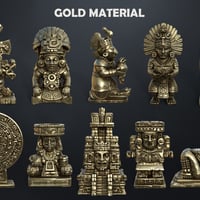 This pack includes 10 realistic Aztec-Maya props, realistic two different materials (stone and gold), ready to be assembled for your 3D works.