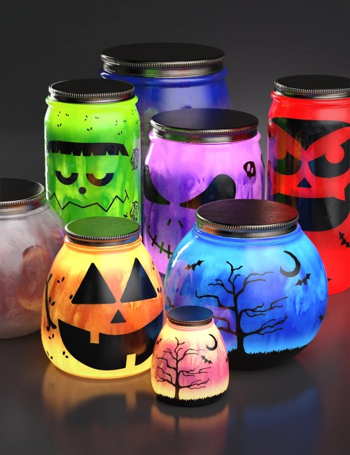 Illuminate your scene with Jar Lanterns, the ultimate tool for autumn ambiance. Choose a whimsical glow, a jack-o’-lantern grin, or a darker, creepier vibe. Six base designs, two horror-inspired variants, and ten vivid colors give endless combinations. You can light a forest path, line a pumpkin patch, or cast eerie shadows in a haunted cottage. These lanterns add color, light, and spooky charm.