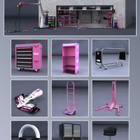 In this set, you will find almost all you need to create a realistic race car garage. There are environment presets and zero props, leaving the final configuration up to you.