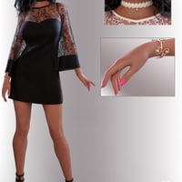 This outfit includes Dress, Heels, Necklace and Bracelets for a cute and unique style for your character.
