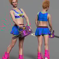 The dForce Scream Team Outfit for Genesis 9 brings a thrilling dose of team spirit to your 3D wardrobe.