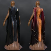 This set includes a matching top and pants that introduce a slight sci-fi or modern twist to the theme and were designed to be worn as an underlayer — or completely independently by themselves to create a sleek skintight catsuit! Complementing the outfit are a pair of elegant boots and bracers for extra protection and comfort. Top it all off with the included long draping sleeves that are the perfect addition to the dress parts of the base set, complete with ornate straps and gems to add more variety.
