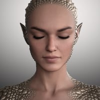 Give your Genesis 9 figures a mythical reptilian look with Dragonscale HD for Genesis 9. HD detailed scales across the body and head, as both flared and flat, pointed ears, individually scaled hands and feet with talons to add that extra animalistic look. With a beautiful glissing platinum finish for the scales, it also includes an optional skin-tinting material if you wish to better match the skin tone to the scales.