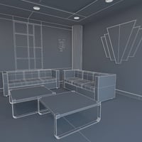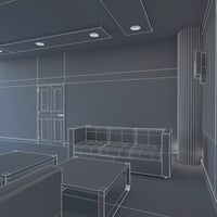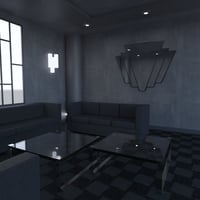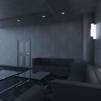 Dystopian Room Interior features a Vignette scene with working-door, mirror, sofa, and tables, Optimized for Studio with Iray.