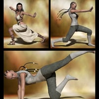 You've seen Victoria 4 in a temple more times than you can count. Now it's time for her to step it up a notch and kick some serious butt, looking more edgy than sexy! Or even better....looking both edgy AND sexy at the same time! There are even a couple of cutesie poses thrown in for good measure! Whether in a ring or on the street...these poses will have Victoria putting her best Iron Fist forward! Bring a little life to your renders!