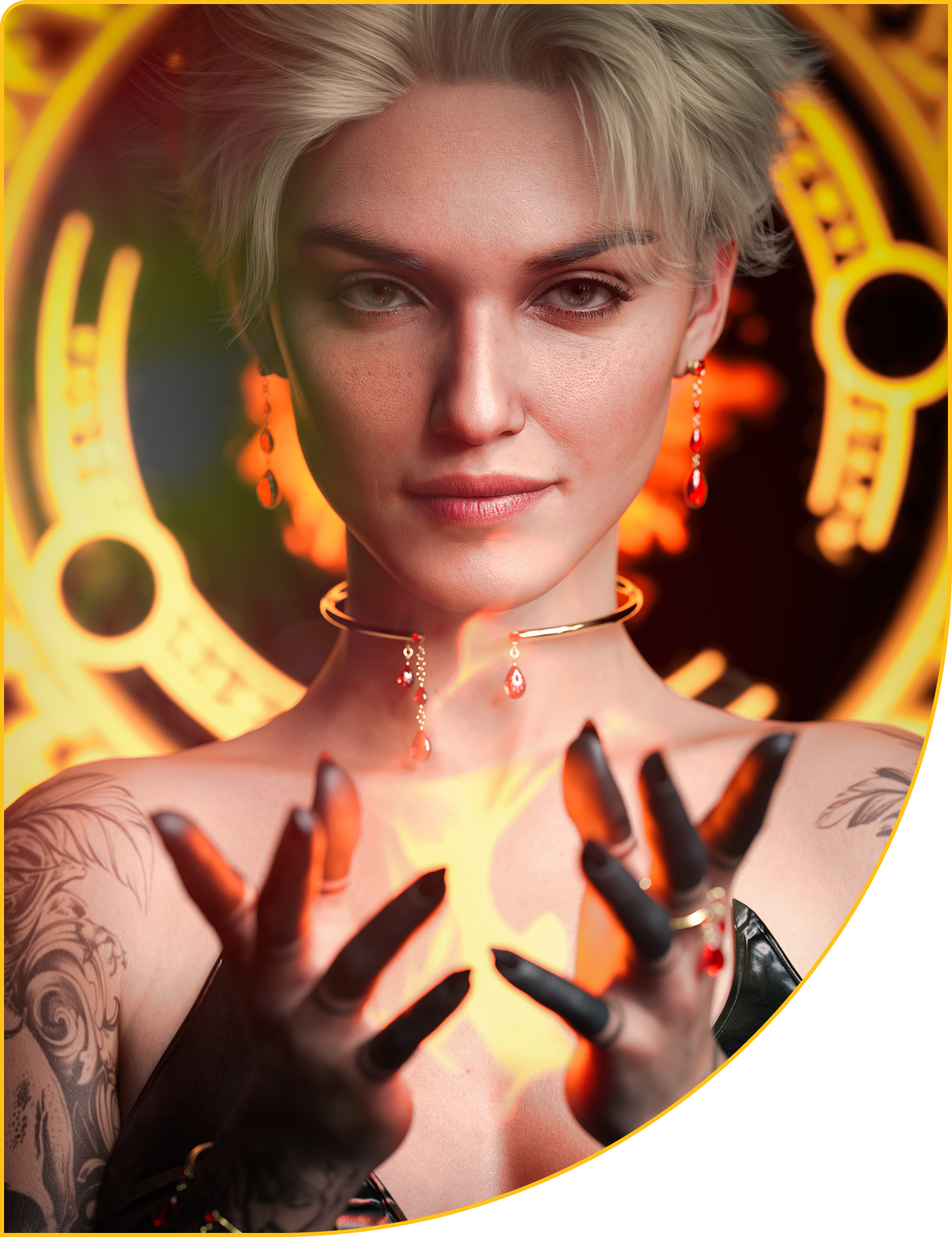 Valenia 9 HD brings high-fantasy elegance to Genesis 9 with her slim silhouette, sharp facial details, custom navel, fibermesh brows, and optional HD morphs. This bundle is ideal for fantasy, sci-fi, and concept portraits.