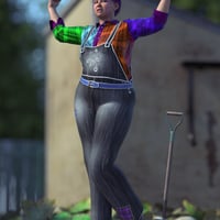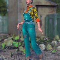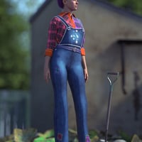 A fun Land girls inspired outfit for Genesis 9, comprising of Coveralls, Shirt, Socks, Belt and Work boots. A geoshell system for the boots and coveralls has been included to add additional dirt for extra realism.