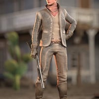 This premium clothing set includes everything you need to transform your character into a rugged, Wild West hero or heroine.