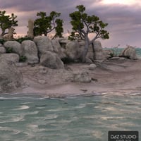 A full set of Iray material presets are included as well. The island itself uses a custom multilayered Iray shader, so while 3Delight material presets are included, Iray is strongly recommended to get the best renders.