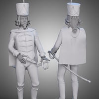 This package includes a cap with an optional feather, an adjustable sword belt with a poseable scabbard, a jacket, boots, and a rigged cape.