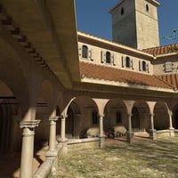 This is a highly detailed scene that has been carefully produced to offer versatility when it comes to rendering. Built as a modular system based on a hexagon layout many parts can be hidden or deleted. The scene includes plants, a detailed tree and benches. The external walls also have geometry and a porch can offer extra options. There is a separate tower which can also be duplicated if it is required. The internal doors all open and closed.