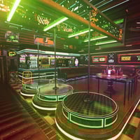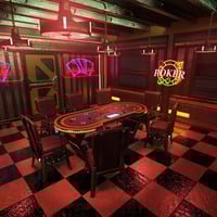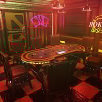 Cyber Club is a neon-drenched futuristic nightclub where pulsing music and high-stakes poker unfolds beneath flickering holosigns.