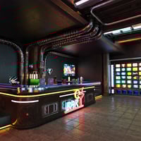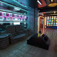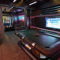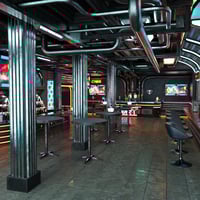 Wind down and have a drink in the Neo Noir themed sci-fi pub.